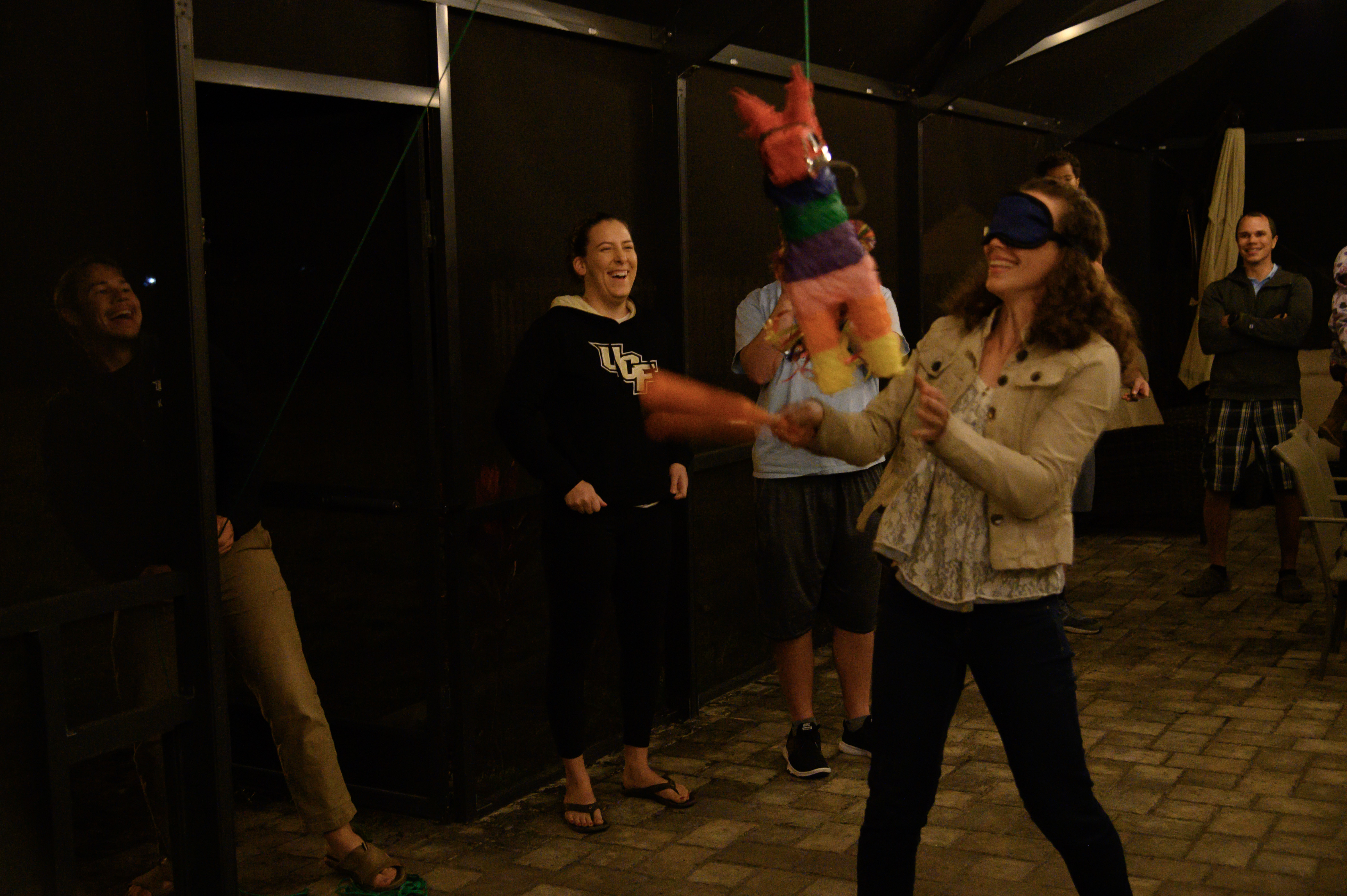 We had everyone there (who wanted one) take a turn whacking the piñata with a plastic baseball bat. After all, Zach and I already knew the gender. It was so much fun having a lot of our friends and family there to celebrate with over this new child!